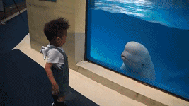 视频中,这头白鲸慢慢靠近玻璃,张开血盆大口,仿佛要吞噬掉所有的孩子们。而当小孩们尖叫着后退时,白鲸又悠哉悠哉地游开了。就这样,小朋友们“被吓”了一次又一次,白鲸也对这 个游戏乐此不疲。