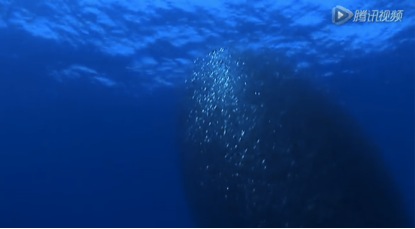 沙丁鱼群绕成一团,幻化万千,在大鱼的攻击下越转越快;