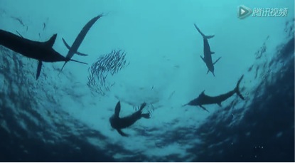 红肉旗鱼移动迅猛,很难看清他们到底都做了些什么。而这些沙丁鱼身后只留下了惊心动魄的恐惧。