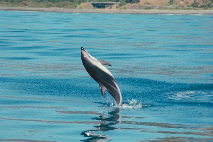 赫氏海豚。 赫氏海豚属于齿鲸亚目。亦称为南非海豚。是国家Ⅱ级保护动物。以乌贼和底栖鱼类为食。分布于南半球的冷水域,即南非西南沿岸海域。