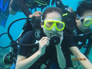 第一次潜水,难免动作夸张,行动不便,耗气,嗓子干的厉害。