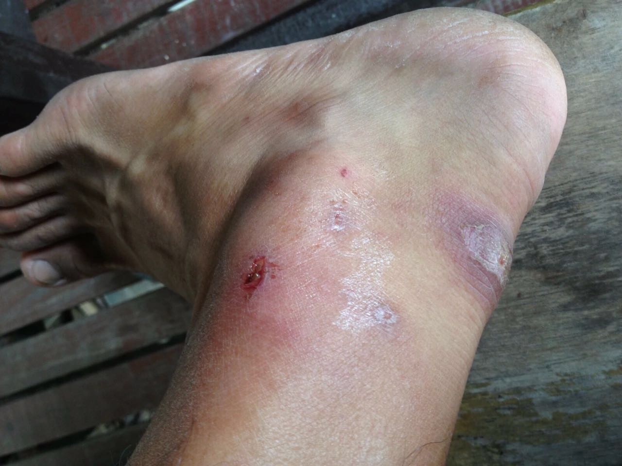 5,初学潜水,直接套脚的蛙鞋很容易磨破脚踝,记得穿潜水袜子或者使用可调节式蛙鞋,穿潜水靴子。