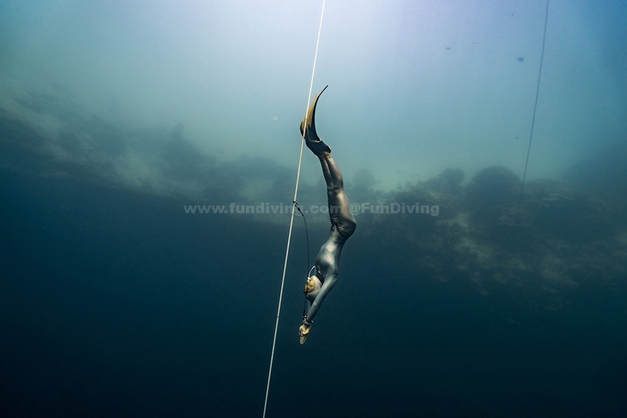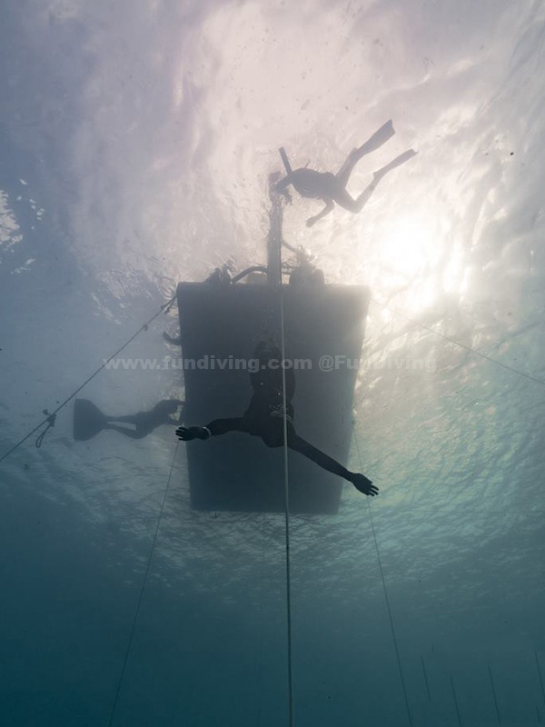 据介绍,“蓝洞深度挑战赛”是国际自由潜水比赛中级别较高的深度赛事,这项比赛要求参赛者在安全员的监督下,仅凭借一口空气,靠自身的力量下潜到海中的指定深度,再返回水面,并完成水面规定动作。该项比赛共设三个项目:恒重踢蹼下潜(CWT),攀绳自由沉降(FIM),恒重无蹼下潜(CNF)。其中,恒重无蹼下潜是对运动员的体力、耐力和意志力要求最高的项目,需要运动员没有任何辅助工具,仅仅使用自己的双手和双脚划水。