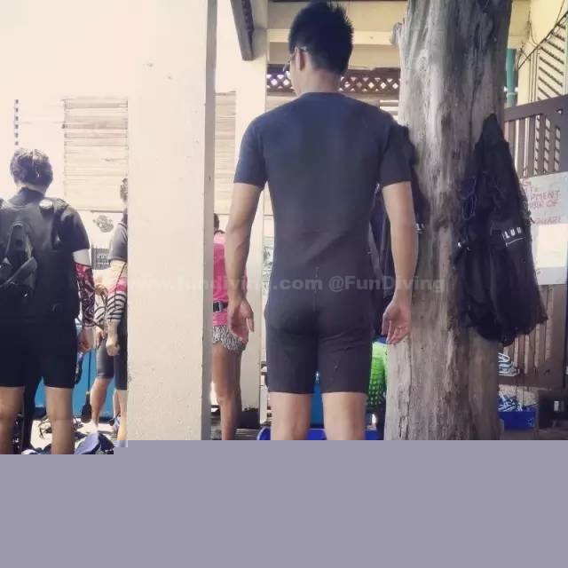 ▲早上八点集合先试装备,你会从一身休闲变成穿着潜水服hhhh