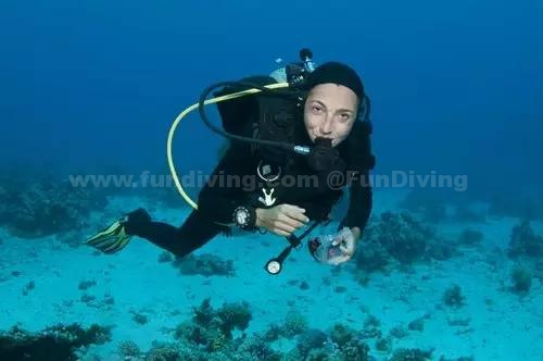 特别大家在做面镜脱下和带回的技巧,在面镜摘除后,我们可以不需要睁开眼睛做,如果你要睁开眼睛的话是看不清楚前方物体,因为我们的眼睛是通过空气进行对焦的,这时不要紧张,保持好自己的呼吸,重新戴回面镜排水即可。