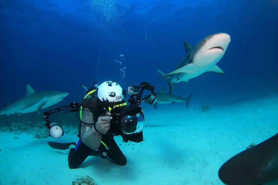 巴哈马群岛的鲨鱼时时传递着自己是这片海域占有者的信息。