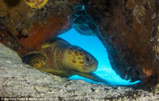他对记者说:“我在巴哈马一个名叫‘失落的蓝洞’的潜水区拍下了这些照片。当时我正在度假,但是也随身带着照相机。”