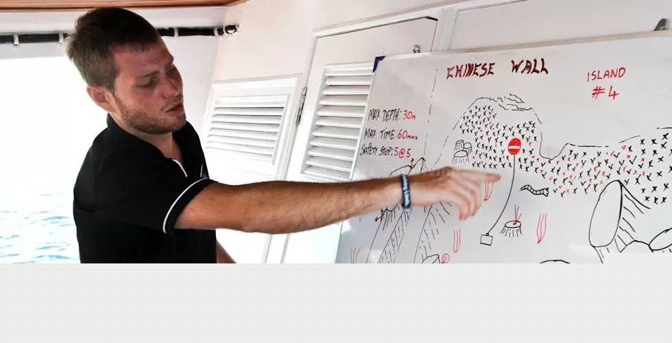 每次潜水之前,必须明白,潜导所说的,任何的不清楚、不理解都要发问。如果潜水员有任何问题,必须提前让潜导知道,例如耳压平衡有点慢,这是最大我们也最常遇到的问题。潜导介绍潜点,必须清楚知道:下水点,上水点,水流方向,什么样的流,interestpoint(亮点)hazardouspoint(危险点)。我本身在蓝梦岛带过无数级别的潜水员,潜水员都明白一点,必须在潜导后面,因为潜导会在及时作出判断,遇到流时会带你避开,如果潜水员超越了潜导,当遇到流时,已经被带走了。