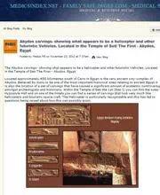 “法老直升机”一时引发了众多荒唐理论,世界闻名的不明飞行物研究专家理查德·赫格兰称,埃及神庙的这些神秘图像证明,古埃及人可能是曾经访问过地球的远古火星人的后裔。