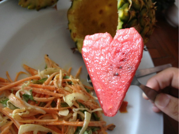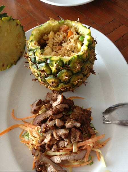 泰餐是很有意思的,它会用很多的香料和调料,而且荤素搭配合理,很是可口。虽然现在正在去皮皮岛的船上敲着这些字句,心里突然十分想念在涛岛和本地人一起喝酒 ,喝得开心的,就会有一个人从家里拿来炖好的本岛鸡,鸡汤香味浓郁,鸡肉口感极好,哎呀呀,怀念啊。在国内第一度假胜地三亚蜈支洲岛上的中餐厅包厢里吃的本岛鸡也是原味鸡汤,地道鸡肉,可比起涛岛的散养本岛鸡还是要差一点自然的野味。