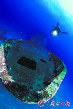 “断尾鱼”的第一潜是参观一艘沉船,是当地为发展海洋生态在一年前人工下沉的一艘报废船只。它为一群群色彩斑斓的热带鱼群提供了栖身之处,细心的你还能发现海兔躲在甲板缝中微笑。