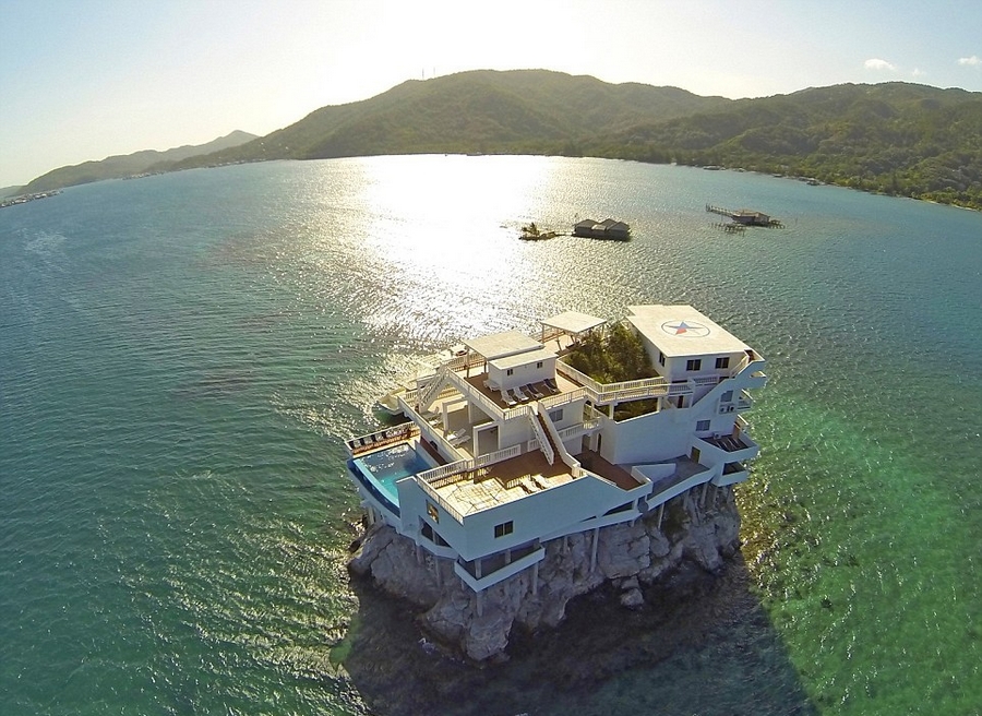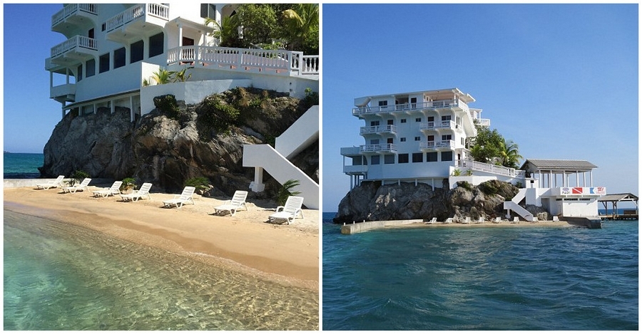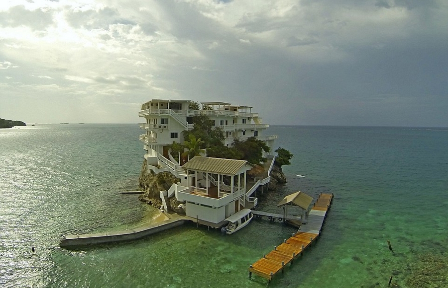 洪都拉斯6000万的近海岩石度假别墅—潜水新贵,据英国《每日邮报》报道,临近瓜纳哈岛Guj、距洪都拉斯大陆44英里约7081千米处的邓巴ubrRk岩石别墅,四面环海、景色怡人、远离外界的干扰,是度假休闲的最佳圣地,更是酷爱潜水游客的水上天堂。从远处看,建造在岩石上的邓巴别墅
