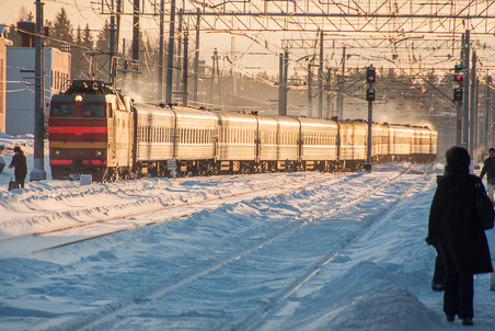 列车穿行在滴水成冰的卡累利阿(译者注:卡累利阿共和国,位于俄罗斯西北部。),坐在闷热的车厢里,看着时而被云朵遮掩时而出现的一轮明月,一定幸福到爆了,再沿着森林走一个半小时,就到目的地啦!