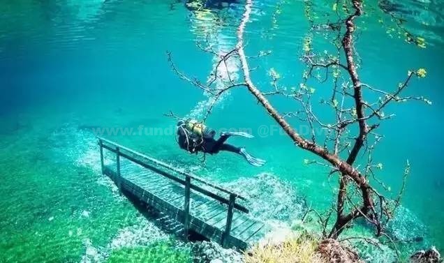 也许你曾经也有来这里探索世界上最美丽湖底公园的计划,这里也因为清澈透明且独特的水底景致,成为了独一无二的潜水胜地,然而很抱歉的告诉你,很多潜水员的梦想破灭了,你的计划已经过期,今年当地政府将禁止绿湖潜水!据英国《每日邮报》报道,奥地利的绿湖(GreenLake)是久负盛名的潜水圣地,但出于保护环境的考虑,当地政府于2016年1月出台政策,禁止在绿湖中潜水。奥地利施蒂利亚的绿湖是一个高山湖泊,它是奥地利最独一无二的潜水之地。绿湖位于山顶被白雪覆盖的霍赫史瓦山脉脚下。随着春天降临,这座公园被冰冷纯净的雪水淹没,由于水下有大量绿草和树木,该湖呈现与众不同的绿色。水下探索者将会在绿湖的湖床上发现鱼儿从树枝、绿草茵茵的地面、长椅、桥梁和一处看起来很像陆上风景的地方悠闲地游过。之所以会是这样,是因为就在半年前这片土地还位于陆上。绿湖位于山顶被白雪覆盖的霍赫史瓦山脉脚下。在寒冷的冬季,该湖几乎完全干枯,变成一座小公园。这里是远足者最喜欢的去处。但是随着春天降临,温度上升迫使山顶的冰雪融化,融水聚集到山脚的盆地里。这座公园被冰冷纯净的雪水淹没,由于水下有大量绿草和树木,该湖呈现与众不同的绿色。 晚春和夏初,这里的水位从冬季的大约1到2米,上升到高达10米。每年6月它的水位最高,此时它成为渴望探索这一罕见现象的潜水爱好者最向往的地方。每年7月底它的水位开始下降。