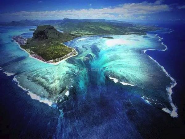 说到毛里求斯,你会想起什么?这个位于非洲东南方的印度洋岛国,除了一般海岛拥有的阳光沙滩、碧海蓝天外,其实还有一个非常震撼的"水下瀑布",一般人可不知道。"水下瀑布奇观"位于毛里求斯西南端的岛屿,从高空中看去,湛蓝透明的海水之下竟然有一个银白色的"瀑布"!这个"瀑布"似乎就"沉浸"在海岛的悬崖边上。大量银白色的"水"顺着悬崖边直冲而下,很快就没入黑漆漆的海地深渊……其实,"水下瀑布"并不是真正的瀑布,是海底的细沙和淤泥顺着洋流源源不断的流向地势稍高的大陆架边缘,然后顺着大陆架边缘坠入黑洞洞的海底,于是就成了一个视觉错误造成的奇观呢,是不是很神奇!