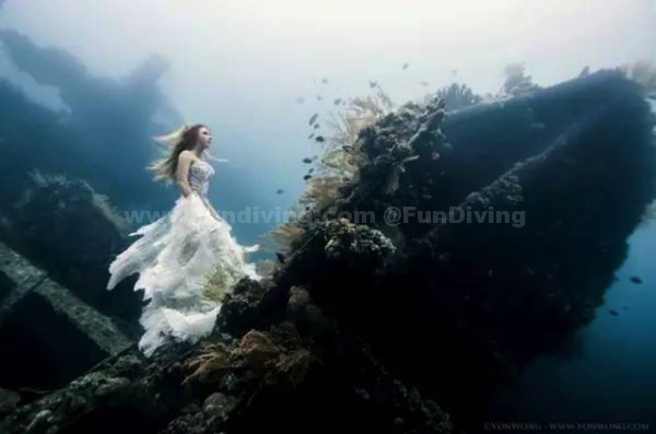 再说个离咱们近的。在婚纱摄影专用取景地,印尼巴厘岛东北部的地方有个叫做Tulamben的著名潜水点,其中最吸引人的水下景色,当属水下佛像和美国自由号沉船。这样布满佛像和神龛的地方,好像比其他海底更加阴森诡异。可是当你呆久了,也许会慢慢安静下来,忘了自己在潜水,好像真的是去礼佛朝圣一样。而大自然也用自己的力量,赋予了这些佛像新的生命。如果这些还不足以让你感叹自然的伟大的话,那这艘美军沉船你一定不能错过。这艘名为"自由号"的美军战船,被日军击溃沉入巴厘海底,却为海洋深处带来了生机新景象。还有摄影团队专门去拍了这样的照片,那么凄美真的好吗?肉丝,你的杰克呢。想来也的确可以成为一个与众不同的结婚照拍摄场地,果然比夕阳下的奔跑要洋气多了。