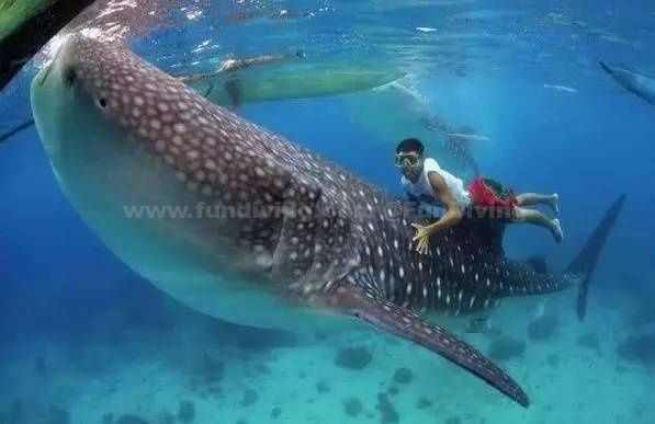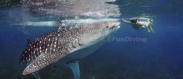 再说个更近的。上面说了那么多水下奇观,不是要深潜就是要飞到空中看全景,如果只会浮潜甚至不会游泳怎么办?那么,在海中与鲸鲨一同游泳,你敢挑战吗?位于菲律宾宿雾本岛最东南端的Oslob,以鲸鲨们的定点聚集而闻名,当地所有的居民也都倚靠赏鲸鲨为生,俨然是个"鲸鲨村"。在这里,你可以将大海当作游泳池,带上泳镜穿上救生衣,等待鲸鲨游近脚边,如此震撼美妙的海中邂逅绝对令人毕生难忘。"鲨鱼"来了,还不快跑?其实,这些大宝贝超级温柔,他们以浮游生物、巨大的藻类、磷虾与小型的自游动物(例如小型乌贼与脊椎动物)为食,除了会被鲸鲨巨大的尾鳍无意间击中以外,不会对人造成任何伤害。我整个鱼都方了。这么大的嘴巴,光吃浮游生物、藻类及小鱼小虾,吃的饱吗?其实,鲸鲨并非原先就定居于此,每年它们顺著洋流周期循环从日本海到印度洋,在每年的五月才来到菲律宾,但一来就会每天吃掉几十公斤的浮花虾,让渔村村民觉得很心痛,于是决定在鲸鲨来的时候,要喂它们吃臭掉的虾,没想到这一喂它们就不走了!第一年有一鲸鲨家族就定居于此,第二年又来了更多鲸鲨,渐渐造就了现在的鲸鲨奇景。(叫你们乱喂!)不过,上面那张图是绝对错误的!!去参加与鲸鲨同游的活动,一定要服从规定,绝对不能触碰鲸鲨的身体,它们的身体是很容易受伤的,想想它们一但受伤的后果你忍心吗?